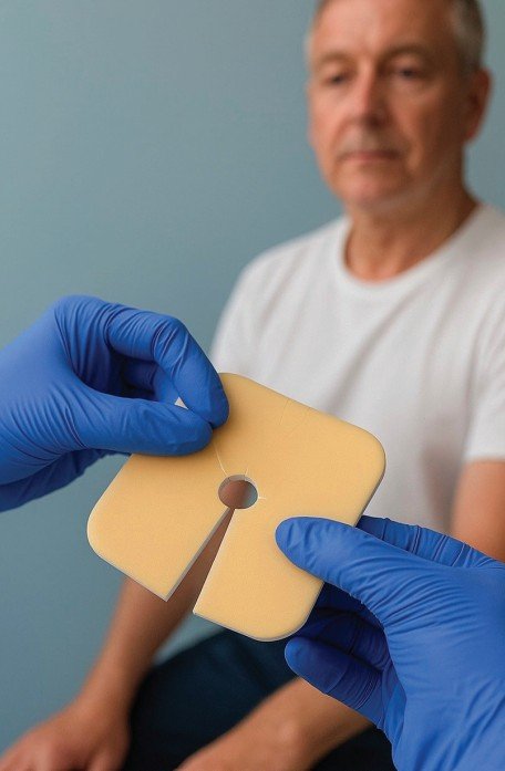 Mnohovrstvé krytí z polyuretanové pěny s otevřenými póry a vrchní krycí voděodolnou polyuretanovou folií, hypoalergenní, sterilní. Více