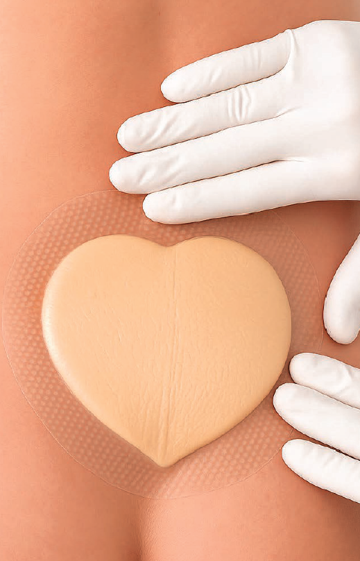 Tato konstrukce zajišťuje vysokou savost, ochranu rány před vnějšími vlivy a bezpečné, atraumatické sejmutí. Krytí přiléhá pevně a pohodlně díky adhezivnímu okraji a pomáhá udržet optimální vlhké prostředí pro hojení.